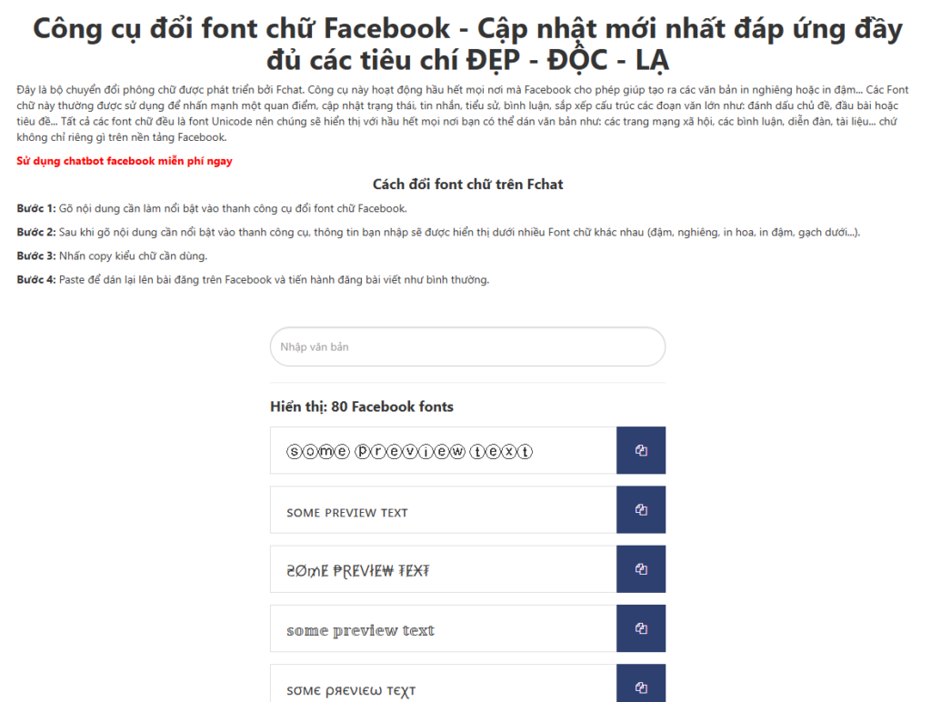 - Bước 1: Truy cập vào trang web Facebook Font Generator